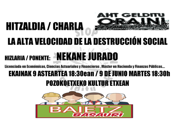 9J, charla: La alta velocidad de la destrucción social (N. Jurado / Pozokoetxeko Kultur Etxean))
